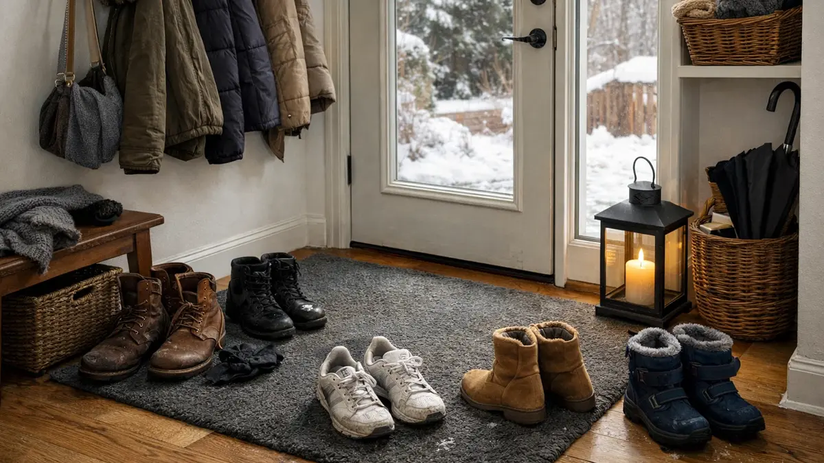 Lasciare le scarpe fuori dalla zona giorno riduce l’ingresso di sporco e batteri.